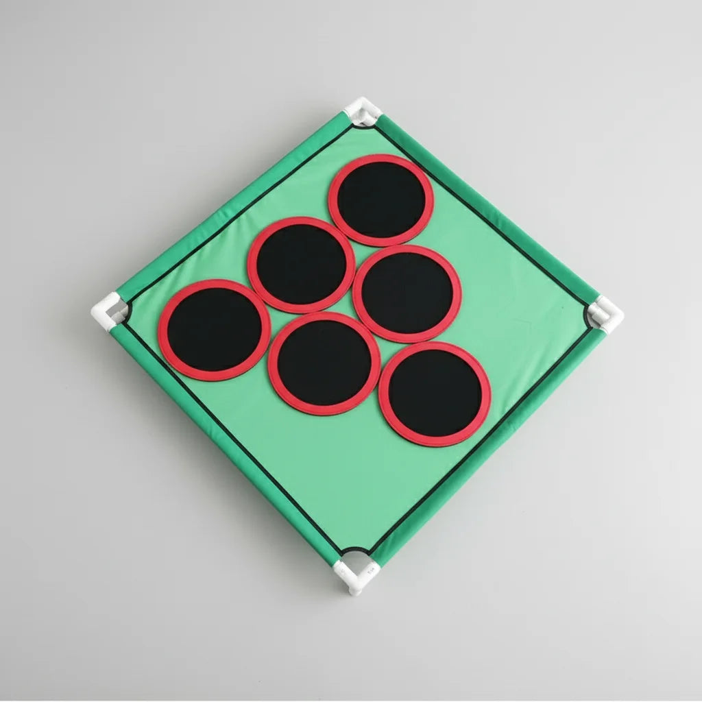 Crafted with a robust green fabric mat and a sturdy white PVC frame, our Chipping Challenge Mat is built to withstand countless practice sessions. It's designed for long-lasting performance, ensuring you get maximum value and endless chipping improvement.
